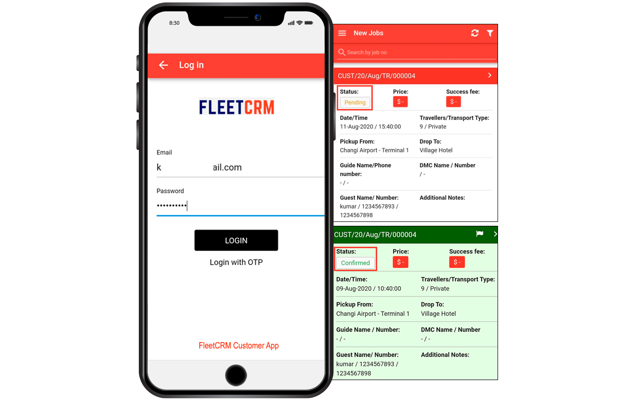 B2B & B2C Customers can now securely login & book their Airport, Ground Transfers & Delivery services , track and manage directly via the FleetCRM mobile app