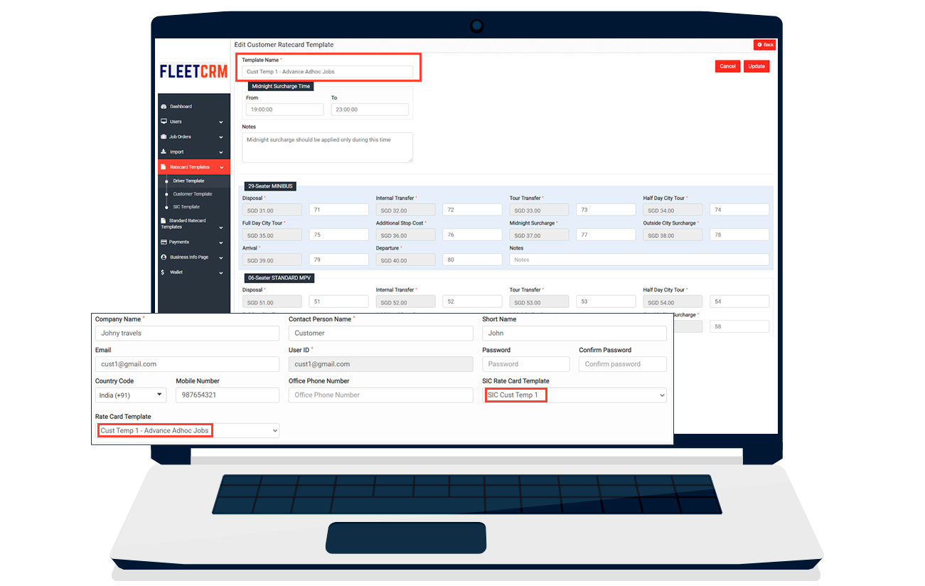 Rate-Card Templates Assigned to Individual Customer & Drivers helps minimise RATE related errors at the time of Booking & Job Assignments